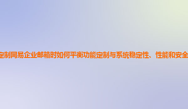 2024-10-30網(wǎng)易企業(yè)郵箱功能定制與系統(tǒng)穩(wěn)定性、性能和安全性的平衡策略 在當(dāng)前數(shù)字化辦公環(huán)境中,企業(yè)對于郵件系統(tǒng)的需求日益多樣化。網(wǎng)易企業(yè)郵箱以其穩(wěn)定性、高性能和安全性贏得了眾多企業(yè)用戶的青睞。然而,如何在進(jìn)行功能...