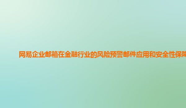 2024-10-29金融行業風險預警郵件應用的重要性 在金融行業中,風險預警郵件系統起著關鍵作用。網易企業郵箱憑借其專業的郵件服務和高效的安全防護,幫助金融機構構建了全面的風險預警與防護體系,為機構的業務運行提供...