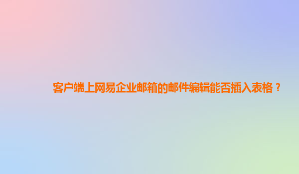 2024-10-28網易企業郵箱郵件編輯中插入表格的功能與優勢 隨著互聯網和信息技術的快速發展,電子郵件已成為企業日常溝通和業務往來的重要工具。網易企業郵箱作為國內領先的企業郵箱服務提供商,憑借其強大的功能和便捷...