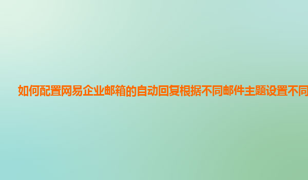2024-10-28如何配置網易企業郵箱的自動回復根據不同郵件主題設置不同內容 網易企業郵箱的優勢 隨著企業信息化的發展,電子郵件作為重要的辦公工具之一,在企業內部和外部溝通中發揮著不可替代的作用。網易企業郵...