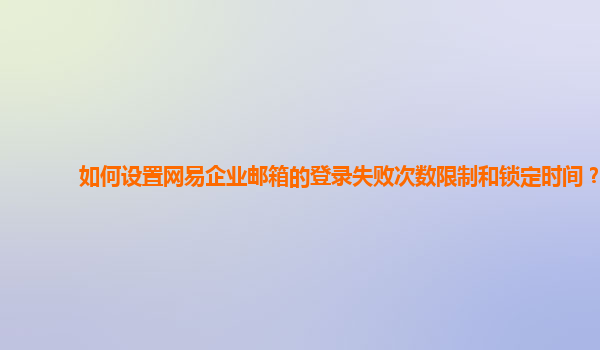 2024-10-27如何設置網易企業郵箱的登錄失敗次數限制和鎖定時間? 在使用網易企業郵箱時,為了保護賬戶安全,我們可以設置登錄失敗次數限制和鎖定時間,以防止惡意登錄或密碼破解行為。下面將介紹如何在網易企業郵箱中進行設置...
