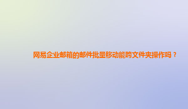 2024-10-27網易企業郵箱郵件批量跨文件夾移動操作 網易企業郵箱在現代企業通信管理中扮演重要角色,提供了安全、穩定、高效的郵件管理解決方案。本文將聚焦于網易企業郵箱的“郵件批量移動”功能,并分析其在跨文件...