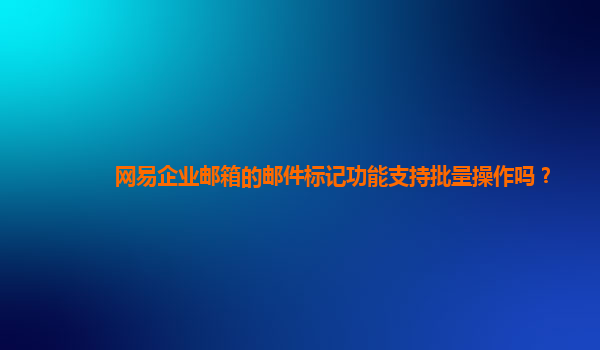2024-10-27網易企業郵箱的郵件標記功能支持批量操作嗎? 在現代企業的日常運營中,電子郵件已成為信息溝通的重要渠道。網易企業郵箱因其安全穩定、功能豐富的特性,逐漸成為眾多企業的首選郵件服務商之一。而在郵箱管理過...
