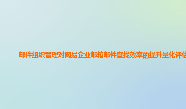 2024-10-26郵件組織管理對網易企業郵箱郵件查找效率的提升量化評估 隨著信息化時代的到來,郵件成為了人們工作和生活中不可或缺的一部分。而在企業中,郵件更是聯系與溝通的重要工具之一。為了提高郵件的管理效率,許多企...