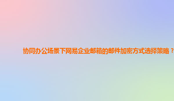 2024-10-26協同辦公場景下網易企業郵箱的郵件加密方式選擇策略 網易企業郵箱優勢 作為一家知名的互聯網公司,網易旗下的企業郵箱在安全性和穩定性方面有著顯著的優勢。其擁有先進的反垃圾郵件技術、強大的病毒檢測能力,保障...