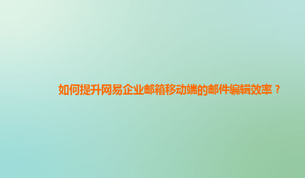 2024-10-26提升網易企業郵箱移動端的郵件編輯效率 隨著移動互聯網的發展,越來越多的人選擇使用手機進行郵件的編輯和發送。網易企業郵箱作為一款功能強大的企業級郵箱服務,其移動端也提供了便捷的郵件編輯功能。下...