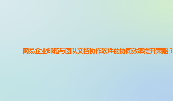 2024-10-26提升團隊協作效率:網易企業郵箱與團隊文檔協作軟件的協同策略 隨著互聯網技術的飛速發展,越來越多的企業開始意識到數字化辦公的重要性。在這個信息爆炸的時代,如何提高團隊的協作效率成為了許多企業關注的焦點。...