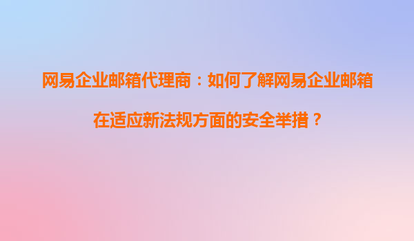 2025-10-21網(wǎng)易企業(yè)郵箱代理商:如何了解網(wǎng)易企業(yè)郵箱在適應(yīng)新法規(guī)方面的安全舉措? 引言:企業(yè)郵箱安全與合規(guī)的重要性 隨著數(shù)據(jù)安全法規(guī)的不斷完善(如《個人信息保護(hù)法》《數(shù)據(jù)...