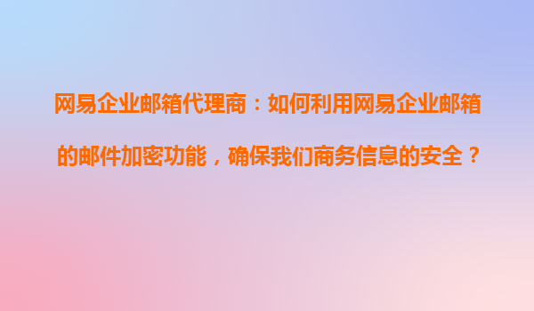 2025-10-22網(wǎng)易企業(yè)郵箱代理商:如何利用網(wǎng)易企業(yè)郵箱的郵件加密功能,確保商務(wù)信息的安全? 在當(dāng)今數(shù)字化時代,商務(wù)郵件的安全性越來越受到企業(yè)的關(guān)注。網(wǎng)易企業(yè)郵箱作為國內(nèi)領(lǐng)先的企業(yè)郵箱服務(wù)提供商,憑借其...