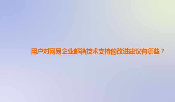 2024-10-25用戶對網易企業郵箱技術支持的改進建議 網易企業郵箱作為一款專業的企業郵件服務產品,擁有許多優勢和特點,為用戶提供了高效、穩定的電子郵件服務。然而,在使用過程中,用戶也會遇到一些問題和需求,因此我們希望...