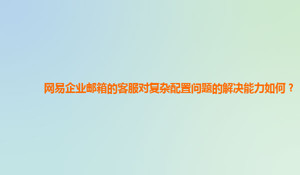 2024-10-25網易企業郵箱的客服對復雜配置問題的解決能力如何? 隨著互聯網技術的發展和企業信息化水平的提高,電子郵箱作為企業日常溝通和業務交流的重要工具,受到越來越多企業的重視。網易企業郵箱以其高效、穩定和安全的...