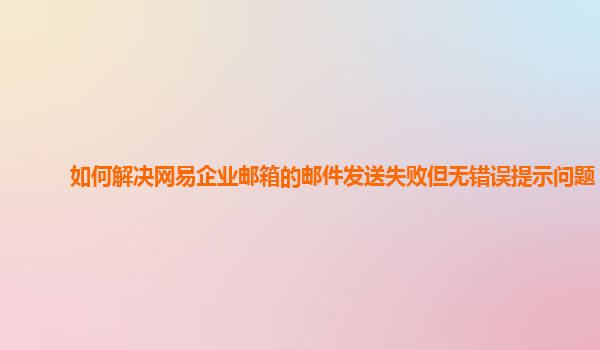 2024-10-25如何解決網易企業郵箱的郵件發送失敗但無錯誤提示問題 背景 在使用網易企業郵箱發送郵件時,有時會遇到郵件發送失敗的情況,但卻沒有收到具體的錯誤提示。這種情況下,我們需要一步步排查并解決該問題。 ...