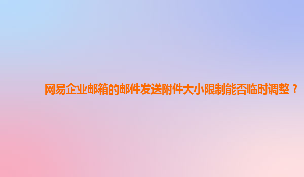 網易企業郵箱的郵件發送附件大小限制能否臨時調整? 作為一名企業員工,我深切體會到了使用網易企業郵箱的諸多便利之處。在使用過程中,我從中感受到了很多優勢,并對企業郵箱的一些特性有了更深入的了解。以下...