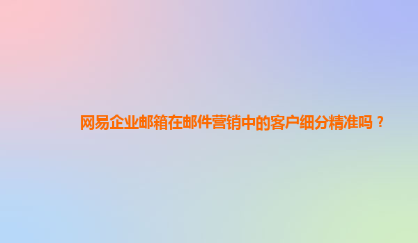 2024-10-20客戶細分:網易企業郵箱的精準策略 在如今數字化時代,精準的客戶細分是企業在市場營銷中脫穎而出的關鍵。網易企業郵箱作為一款功能強大的辦公工具,在郵件營銷中通過其高效的客戶細分功能幫助企業更好地觸達目標...