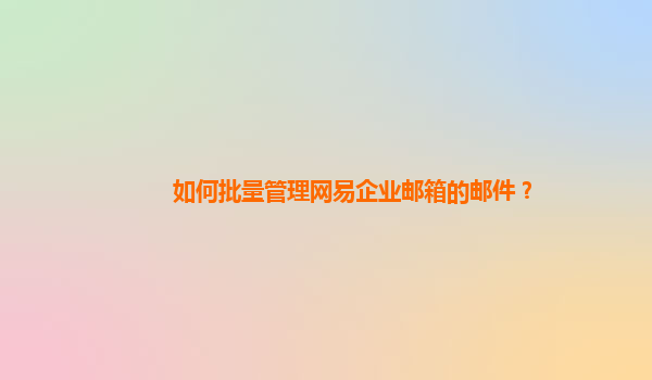 2024-10-19如何批量管理網易企業郵箱的郵件? 一、網易企業郵箱的優勢 網易企業郵箱是一款專為企業用戶設計的高效郵件服務工具,具有以下優勢: 穩定可靠:采用全球領先的云計算技術,保障郵件系統24小...