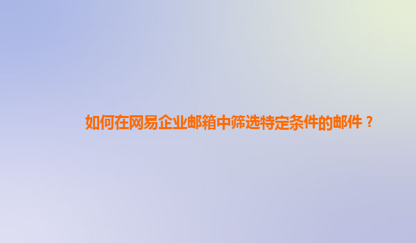 2024-10-20如何在網易企業郵箱中篩選特定條件的郵件? 1.登陸網易企業郵箱 首先,在瀏覽器中輸入企業郵箱登錄網址,輸入您的郵箱地址和密碼,成功登陸您的企業郵箱賬號。 2.進入郵件篩選頁面 在郵箱主頁上方菜單欄找到“篩...