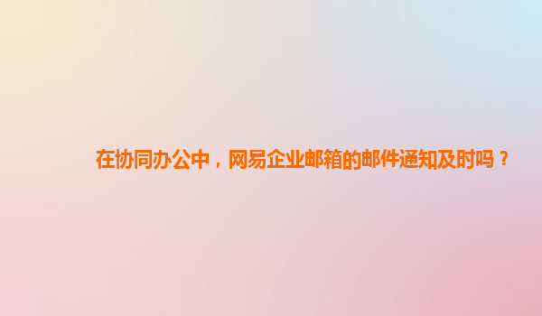 2024-10-20在協同辦公中,網易企業郵箱的郵件通知及時嗎? 在現代企業辦公環境中,協同辦公是提高效率和促進團隊合作的重要方式。而在協同辦公的眾多工具中,郵件依然是信息傳遞和任務溝通的重要手段。因此,選擇一...