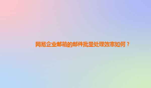 2024-10-16網易企業郵箱的郵件批量處理效率如何? 隨著企業信息化管理的不斷深入,電子郵件作為企業溝通的主要工具,其使用頻率越來越高。尤其對于大型企業或業務繁忙的團隊,郵件的批量處理成為一項至關重要的需求。網...