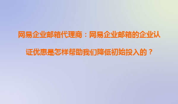 2025-10-18網(wǎng)易企業(yè)郵箱代理商:網(wǎng)易企業(yè)郵箱的企業(yè)認(rèn)證優(yōu)惠是怎樣幫助我們降低初始投入的? 在當(dāng)今數(shù)字化商業(yè)環(huán)境中,企業(yè)郵箱不僅是溝通工具,更是品牌形象和商業(yè)信任的體現(xiàn)。對(duì)于初創(chuàng)企業(yè)或中小型企業(yè)而言,選擇一...