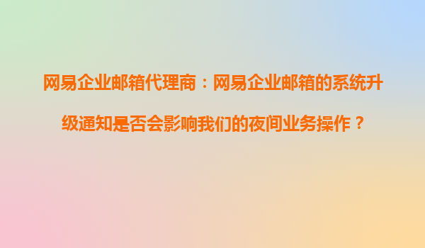 4008-020-360 網(wǎng)易企業(yè)郵箱代理商:網(wǎng)易企業(yè)郵箱的系統(tǒng)升級(jí)通知是否會(huì)影響我們的夜間業(yè)務(wù)操作? 網(wǎng)易企業(yè)郵箱作為國(guó)內(nèi)領(lǐng)先的企業(yè)通信解決方案提供商,一直致力于為企業(yè)用戶提供穩(wěn)定、安全、高效的企業(yè)郵箱服務(wù)。近...