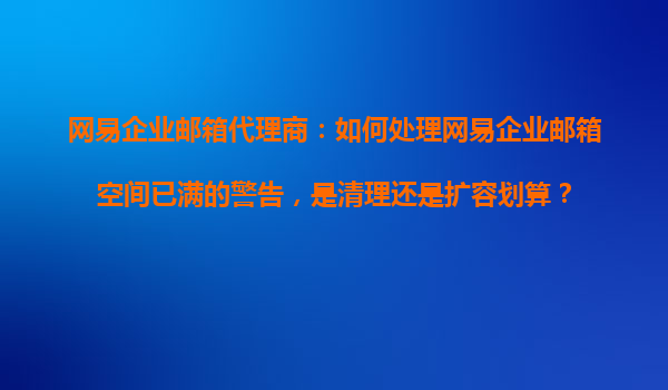 2025-10-19網(wǎng)易企業(yè)郵箱代理商:如何處理網(wǎng)易企業(yè)郵箱空間已滿的警告,是清理還是擴(kuò)容劃算? 在數(shù)字化辦公時(shí)代,企業(yè)郵箱已成為高效溝通的重要工具。網(wǎng)易企業(yè)郵箱憑借其穩(wěn)定的性能、豐富的功能和強(qiáng)大的安全保障,成為...