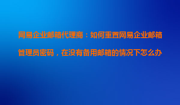 2025-10-19網(wǎng)易企業(yè)郵箱代理商:如何重置網(wǎng)易企業(yè)郵箱管理員密碼,在沒有備用郵箱的情況下怎么辦? 網(wǎng)易企業(yè)郵箱的優(yōu)勢(shì) 網(wǎng)易企業(yè)郵箱作為國(guó)內(nèi)領(lǐng)先的企業(yè)郵件服務(wù)提供商,憑借其穩(wěn)定、安全、高效的特點(diǎn),贏得了眾多...