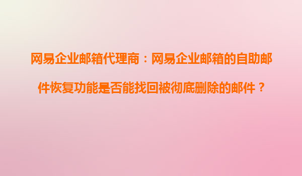 2025-10-18網(wǎng)易企業(yè)郵箱代理商:網(wǎng)易企業(yè)郵箱的自助郵件恢復(fù)功能是否能找回被徹底刪除的郵件? 在數(shù)字化辦公時(shí)代,企業(yè)郵箱作為日常溝通的核心工具,其數(shù)據(jù)安全與郵件管理能力備受關(guān)注。網(wǎng)易企業(yè)郵箱憑借強(qiáng)大的...