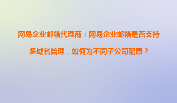 2025-10-18網(wǎng)易企業(yè)郵箱代理商解析:多域名管理與子公司配置指南 一、網(wǎng)易企業(yè)郵箱的多域名管理能力 作為國(guó)內(nèi)領(lǐng)先的企業(yè)級(jí)郵箱服務(wù)商,網(wǎng)易企業(yè)郵箱支持靈活的多域名綁定與管理功能,滿足集團(tuán)型企業(yè)、跨國(guó)公司和擁有...
