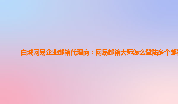 2024-06-13通化網易企業郵箱代理商:網易郵箱大師怎么登陸郵箱賬號 作為一款優秀的企業郵箱工具,網易企業郵箱在日常商業應用中備受好評。作為其代理商,通化網易企業郵箱的使用率更是極高。然而,對于許多新用戶來說,“如何...