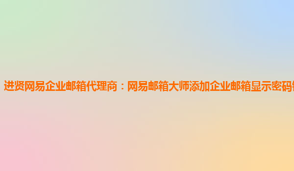 2024-06-13進賢網易企業郵箱代理商:網易郵箱大師添加企業郵箱顯示密碼錯誤怎么辦 在當下這個信息化社會,電子郵件已經成為了工作生活中的必需品,而針對企業的電子郵件服務更是不容忽視的一個重要工具。網易企業郵箱代理商為...