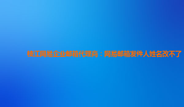 2024-06-13枝江網易企業郵箱代理商:網易郵箱發件人姓名改不了 近日有用戶反映在使用網易企業郵箱時,遇到了無法更改發件人姓名的問題。作為枝江地區的網易企業郵箱代理商,我們也收到了不少關于這個問題的咨詢。下面我們來解...