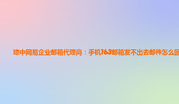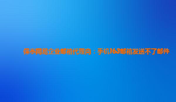 2024-06-12保亭網易企業郵箱代理商:手機163郵箱發送不了郵件 最近在使用手機163郵箱時,發現無法發送郵件的問題令人頭疼。但是幸運的是,我找到了保亭網易企業郵箱代理商,通過他們提供的企業郵箱服務解決了這一困擾。 在使...