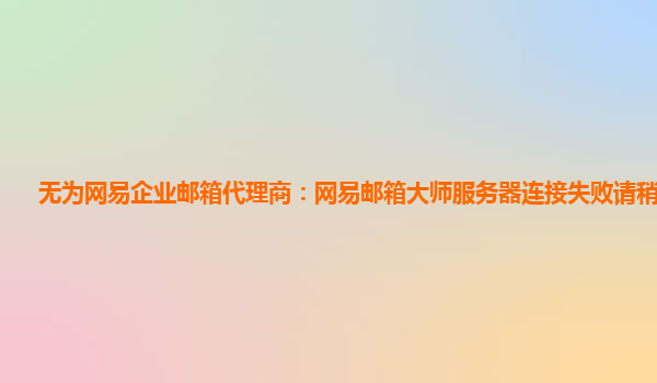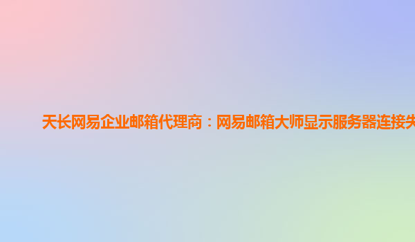 2024-06-12天長網易企業郵箱代理商:網易郵箱大師顯示服務器連接失敗 近日,網易郵箱大師顯示服務器連接失敗的情況引起了不少用戶關注。作為天長網易企業郵箱代理商,我們希望通過本文來介紹網易企業郵箱的優勢和好用之處,讓...