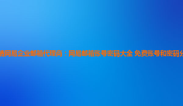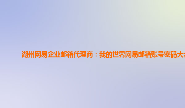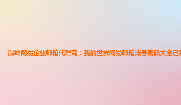 2024-06-12湖州網易企業郵箱代理商:我的世界網易郵箱賬號密碼大全 網易企業郵箱是一款專為企業定制的電子郵件服務,具有穩定、安全、高效的特點,受到廣大企業用戶的喜愛。作為湖州地區的網易企業郵箱代理商,我們致...