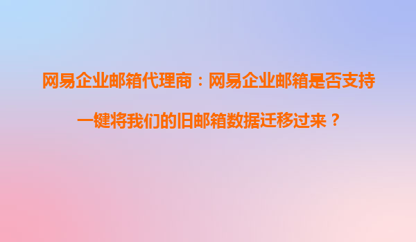2025-10-16網(wǎng)易企業(yè)郵箱代理商:網(wǎng)易企業(yè)郵箱是否支持一鍵將我們的舊郵箱數(shù)據(jù)遷移過來? 一、網(wǎng)易企業(yè)郵箱數(shù)據(jù)遷移功能概述 作為國內(nèi)領(lǐng)先的企業(yè)級郵箱服務(wù)提供商,網(wǎng)易企業(yè)郵箱充分考慮到了企業(yè)在更換郵箱系統(tǒng)時的數(shù)據(jù)遷移需...