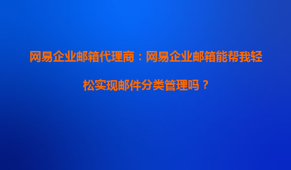 2025-10-16網(wǎng)易企業(yè)郵箱如何助力企業(yè)高效實現(xiàn)郵件分類管理 智能化分類標簽,讓郵件管理一目了然 網(wǎng)易企業(yè)郵箱提供強大的智能化分類標簽功能,可根據(jù)郵件內(nèi)容、發(fā)件人、主題等關(guān)鍵信息自動為郵件打上分類標簽。用...
