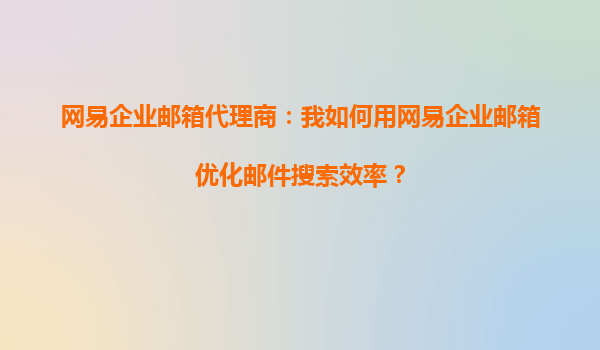 2025-10-15網(wǎng)易企業(yè)郵箱代理商:如何用網(wǎng)易企業(yè)郵箱優(yōu)化郵件搜索效率? 引言 在快節(jié)奏的現(xiàn)代商業(yè)環(huán)境中,高效溝通是企業(yè)成功的關(guān)鍵之一。郵件作為最常用的商務(wù)溝通工具之一,其管理效率直接影響團隊協(xié)作和業(yè)務(wù)推...