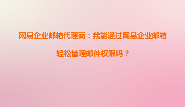 2025-10-15網(wǎng)易企業(yè)郵箱:高效管理郵件權(quán)限的可靠之選 在企業(yè)管理中,郵件系統(tǒng)的權(quán)限管理是確保信息安全和工作效率的重要環(huán)節(jié)。作為國內(nèi)領(lǐng)先的企業(yè)郵箱服務(wù)提供商,網(wǎng)易企業(yè)郵箱憑借其強大的功能和靈活的權(quán)限管理機制,成...