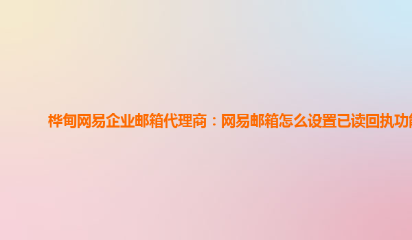 2024-06-12阜新網易企業郵箱代理商:網易郵箱大師的已讀回執怎么設置密碼 作為一家阜新地區的網易企業郵箱代理商,我們提供專業的企業郵箱服務,其中包括網易郵箱大師。在使用網易企業郵箱的過程中,很多用戶都會遇到設置已讀...