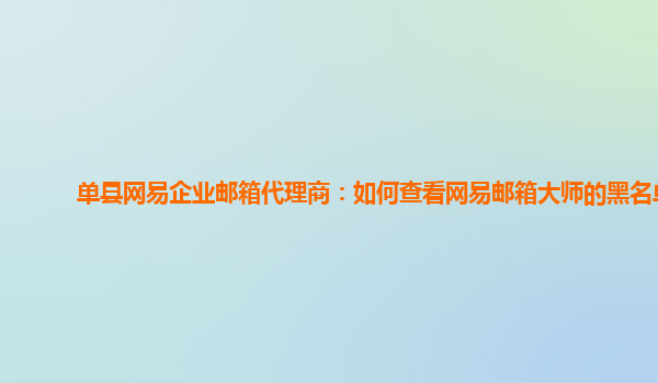 2024-06-11青州網易企業郵箱代理商:網易郵箱拉黑名單在哪 作為青州地區的網易企業郵箱代理商,我們不僅提供高效、安全、穩定的郵箱服務,更提供豐富的管理功能,幫助企業實現郵件信息的高效管理。今天,我們就來解答一下...