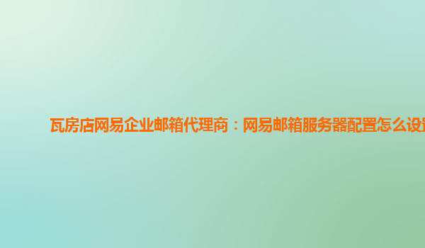 2024-06-11瓦房店網易企業郵箱代理商:網易郵箱服務器配置怎么設置 作為全國范圍內的優秀郵件服務提供商,網易企業郵箱服務通過其穩定、安全、高效的特性,深受廣大企業用戶的歡迎。而作為其在瓦房店地區的代理商,我們更是致...