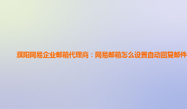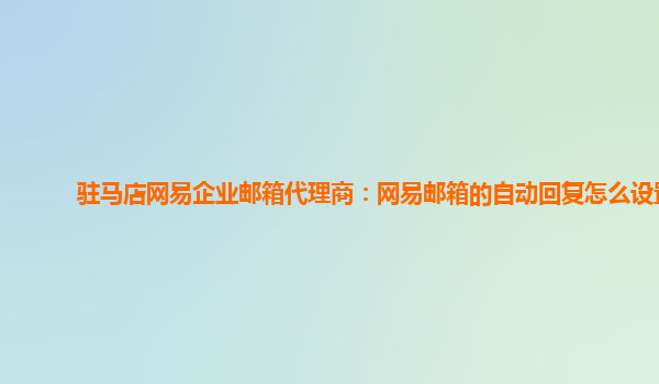 2024-03-15駐馬店網易企業郵箱代理商:網易郵箱的自動回復怎么設置為了更好地服務企業用戶,網易推出了企業郵箱,旨在提供更加專業、穩定、安全的電子郵件服務。作為駐馬店的網易企業郵箱代理商,我們深刻體會到企業郵箱帶來的...