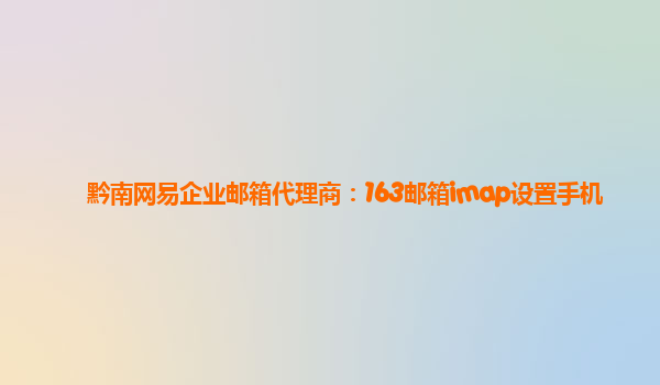 2024-03-15網易企業郵箱代理商:163郵箱imap設置手機 網易企業郵箱是國內著名的企業級郵箱服務提供商,為了幫助用戶更好地使用郵箱服務,網易企業郵箱代理商推出了163郵箱imap設置手機教程,讓用戶能夠更輕松地在移動設備上收...
