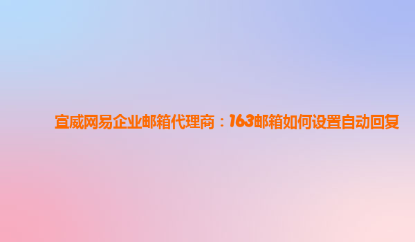 2024-03-15宣威網易企業郵箱代理商:163郵箱如何設置自動回復 作為一款專門面向企業用戶的電子郵件服務,163企業郵箱具有諸多優勢。例如,提供了穩定可靠的企業級郵件服務、安全性高、支持海量郵件的收發等等。不僅如此,163...