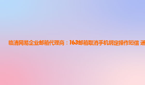2024-03-15臨清網易企業郵箱代理商:163郵箱取消手機綁定操作短信通知 近日,網易企業郵箱宣布取消郵箱手機綁定的操作短信通知。這一舉措得到了臨清網易企業郵箱代理商的積極響應和支持。以下是詳細內容: 網易企業郵箱代理商...