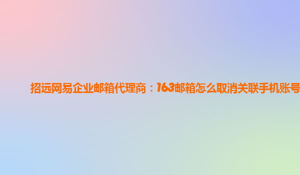 2024-03-15招遠網易企業郵箱代理商:163郵箱怎么取消關聯手機賬號 如果您在使用163企業郵箱時,想要取消關聯手機賬號,可以按照以下步驟操作: 登錄您的163企業郵箱賬號。 在頁面右上角找到“設置”按鈕,點擊進入設置...
