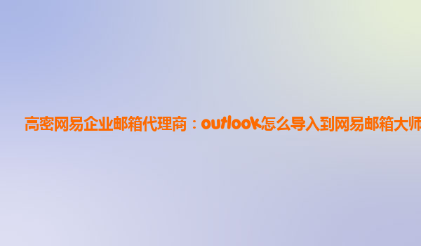 高密網易企業郵箱代理商:outlook怎么導入到網易郵箱大師 在日常工作中,我們經常會發現需要將outlook中的郵件或聯系人導入到網易郵箱大師中,在這里我們來簡單介紹一下具體的操作步驟。 將outlook郵件導入到網易...