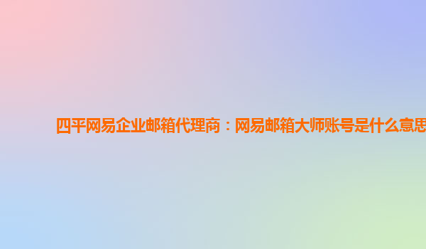 2024-03-14四平網易企業郵箱代理商:網易郵箱大師賬號是什么意思 網易企業郵箱是一款專為企業客戶打造的電子郵件服務,擁有穩定高效的郵件傳輸和智能化的管理功能。而網易企業郵箱代理商則是指在官方渠道授權下,為企業客戶提...
