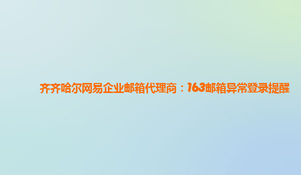 2024-03-14齊齊哈爾網易企業郵箱代理商:163郵箱異常登錄提醒 尊敬的用戶您好,我們是齊齊哈爾地區的網易企業郵箱代理商,近期發現部分用戶賬號出現異常登錄情況,特發出此提醒。 網易企業郵箱的優勢 ...