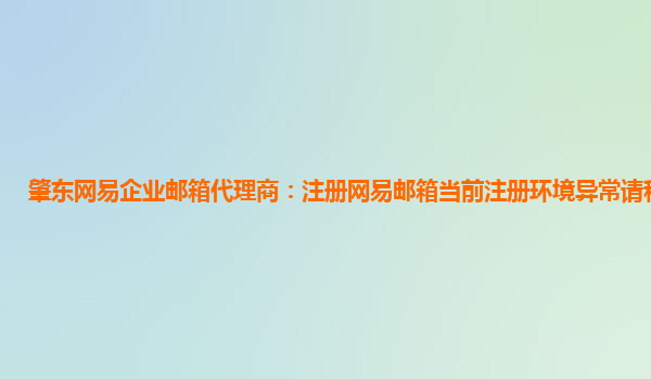 2024-03-14肇東網易企業郵箱代理商:注冊網易郵箱當前注冊環境異常請稍后重試 作為一家專業的網易企業郵箱代理商,我們深知企業郵箱在企業管理中的重要性和優勢。在此,我們想向大家介紹一下網易企業郵箱的優勢以及我們作為代...